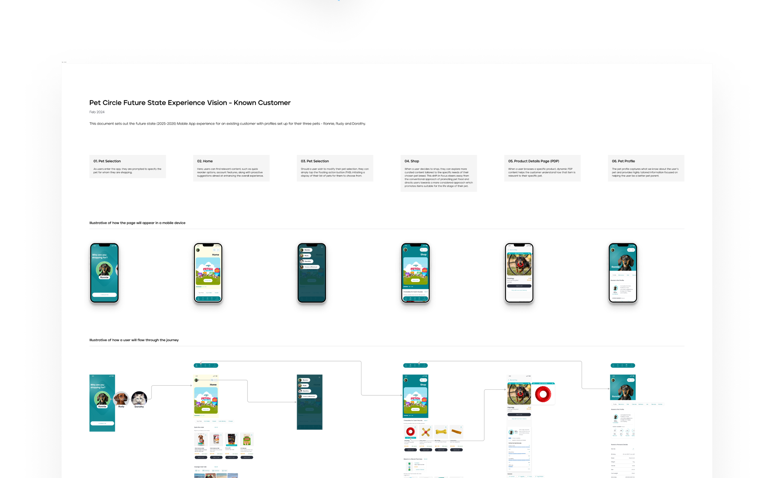 Throughout multiple rounds of iterations, we focused on key areas such as the Pet Profile and two distinct user journeys: those of known and unknown pet parents. Our aim was to tailor the experience to surpass the needs of each user, reshaping the landscape and establishing a new standard in the market.